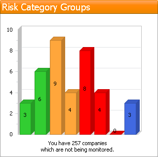 Displays the number of customer accounts in each risk category that you are monitoring. There are 8 risk categories displayed from left to right as follows: