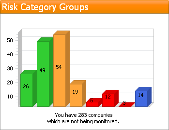 ![]() Breaks down the the number of companies you are monitoring in to each risk category they are in. There are 8 risk categories displayed from left to right as follows: